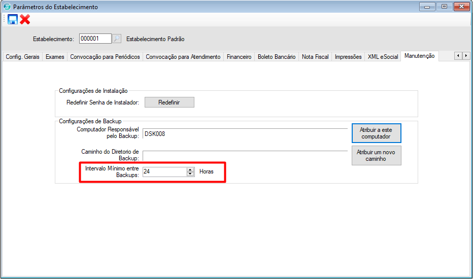 Informe o intervalo mínimo de horas que deseja que o Sistema realize o backup.