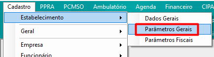 - Acesse o menu Cadastro > Estabelecimento > Parâmetros Gerais.